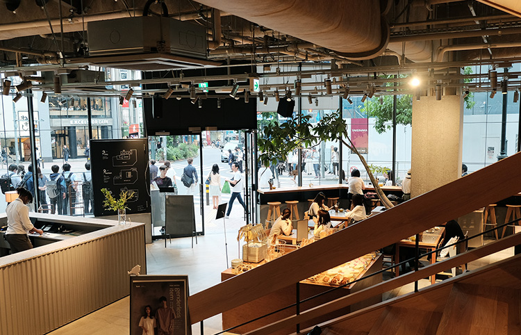 인터섹트 바이 렉서스에서는 점심을 먹으려고 했다. 물론 예약제이고 그 예약은 이미 꽉 차 있단 사실을 몰랐던 터라 아쉽지만 잠시 내부만 구경하고 돌아가려 했다. 그런데 갑자기 투어를 해주겠다고 직원이 나섰다. 응? 왜? 왜? 나는 이유도 정확히 알지 못하고 팀원들을 따라 카페 1층과 2층 그리고 지하의 VIP 회원들을 위한 바까지 둘러봤다. 영어로 진행되었던 터라 100% 다 알아듣진 못했지만, 어제 본 히비야의 렉서스밋츠에서 느꼈던 실망은 흥미로움으로 바뀌었다.