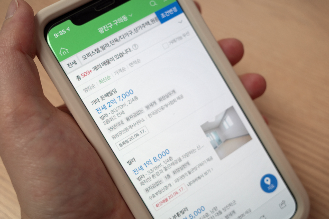그런데 우습게도 내가 계약한 집은 '직방'을 통해 찾았다. 2차례 가계약이 파기되어 자포자기 심정으로 보던 중에. 이 집은 정확히 네이버 부동산에서 먼저 확인하고 걸렀던 매물이었는데 공인중개사님이 직접 사진을 찍었기에 발견할 수 있었다. (기존 사진은 밤에 찍어 채광을 확인할 수 없었고, 세입자의 물건들을 가리기 위해 여기저기 스티커로 가려놔서 집을 정확히 볼 수 없었다.)