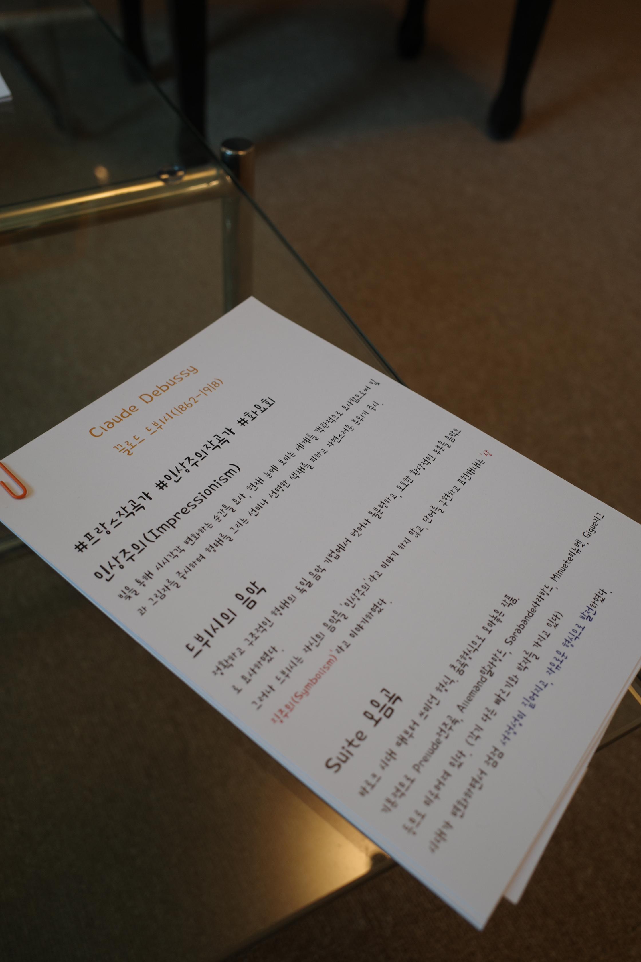 류쌤에게 피아노를 배우는 것도 좋아하지만, 음악에 대해 설명해 주실 때마다 반한다. 이번 수업은 인상주의와 모음곡의 형태에 대한 이야기를 들었다. 모음곡은 총 4개였는데, 제목이 붙은 곡은 ‘달빛’뿐이라니. 역시 알고 듣는 것과 모르고 듣는 것은 좀 다르다.