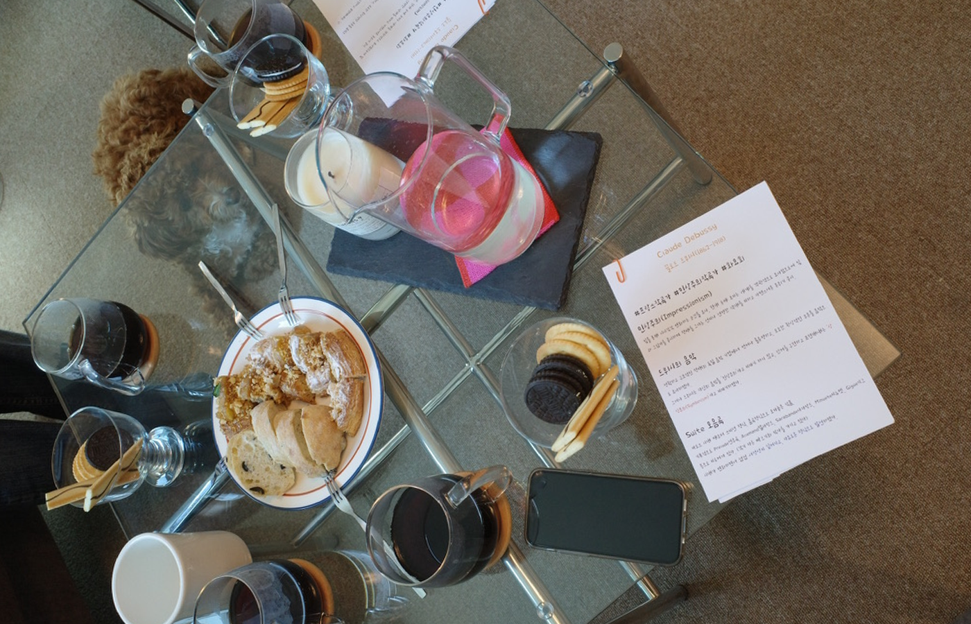 수업 내용 : 음악감상 90분(음악 자료와 간단한 다과, 커피 or 티 제공), 그림 90분(재료 제공 : 종이캔버스 (22x22cm), 오일파스텔, 색연필, 마커, 연필, 펜 등