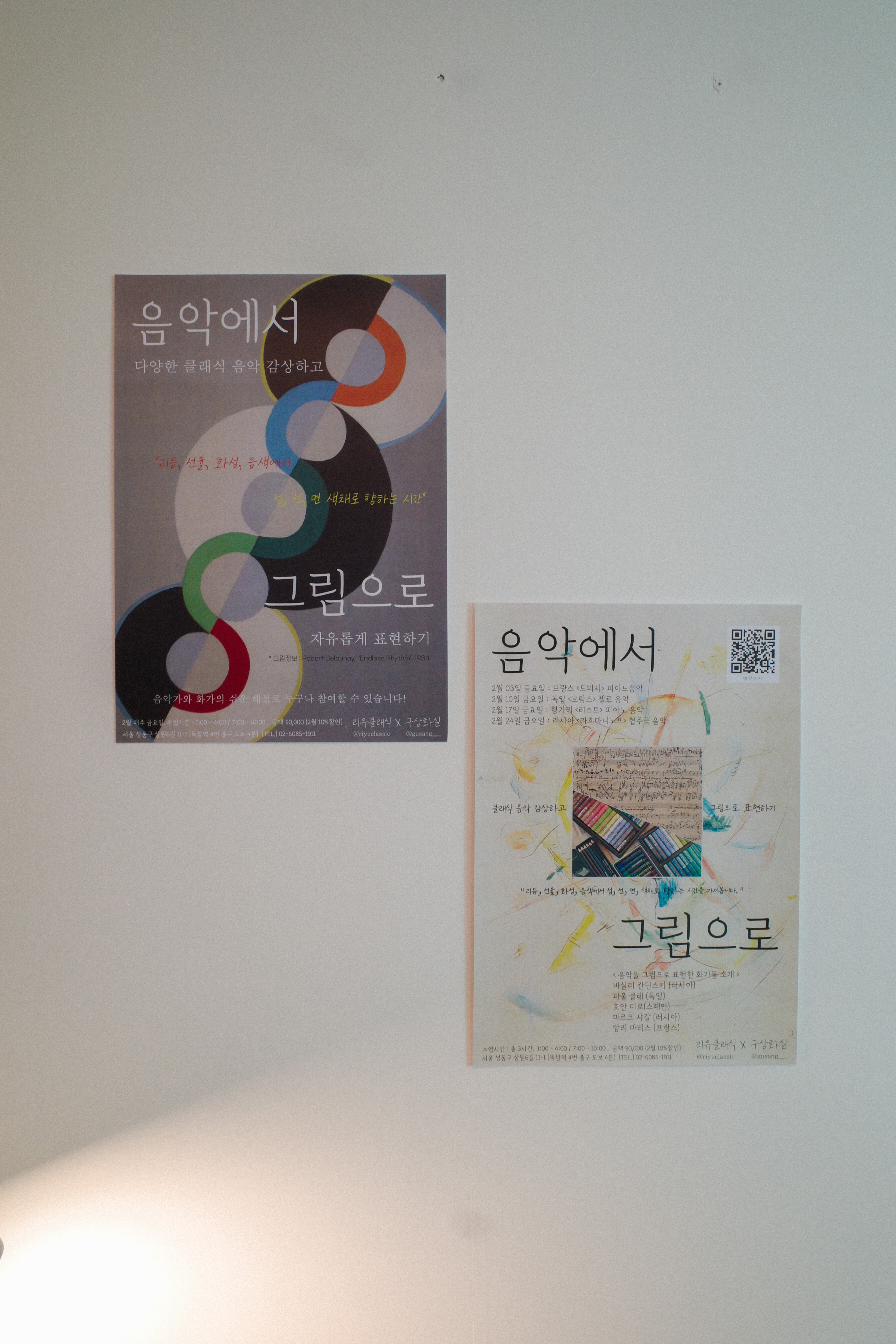 3층에서 음악을 듣고 2층에서 그림을 그렸다. 건물주가 예술을 사랑하는 사람인 건지 한 건물에서 음악과 미술을 함께 배울 수 있다니. 위치도 재미있지만, 수업은 훨씬 재미있다.