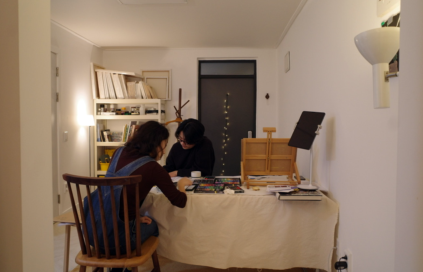 음악 감상을 마치고 그림을 그리기 위해 3층에서 2층으로 내려갔다.