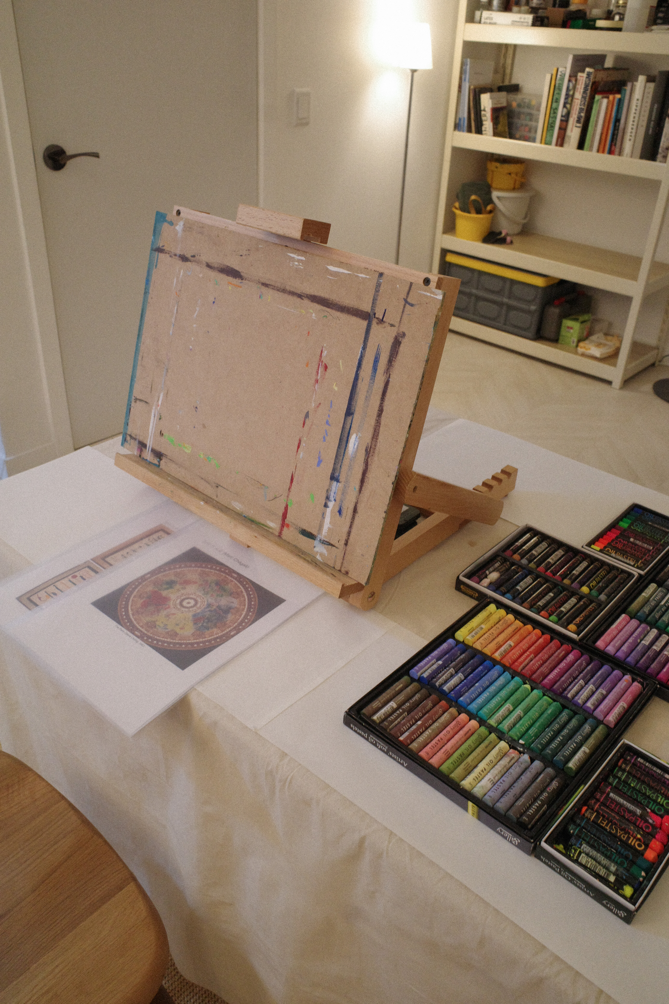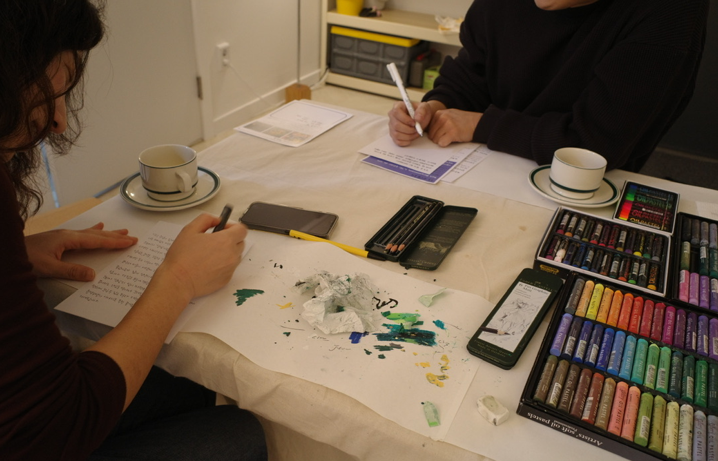 캔버스를 앞에두고 음악을 들으며 생각했던 것을 구쌤에게 설명했다. 선생님은 오일파스텔의 사용 방법에 대한 이야기를 하며 수정이 수월하니 마음껏 표현해도 좋다고 하시더라. 자유롭게라, 사실 그림을 그리는 것에 있어 가장 큰 두려움은 ‘망치는 것'인데 그런 부담을 조금이나마 내려놓을 수 있다는 것으로도 오일파스텔이 마음에 들었다.