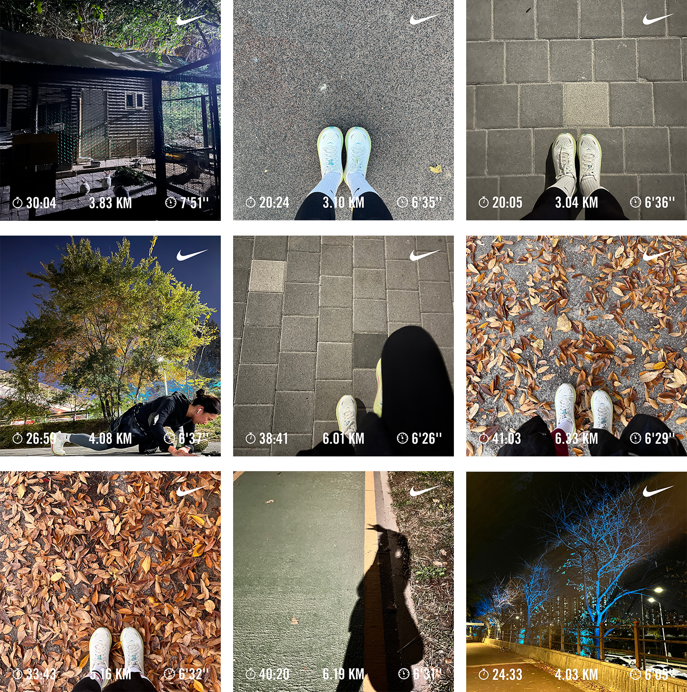 달리기 앱인 ‘런데이(Runday)’를 통해 시작한 달리기는 뛰다 걷지 않고 한번 뛰어보자는 마음으로 바뀌어 그렇게 NRC 앱에 첫 달리기 기록을 남겼다. 3.59km, 페이스 8분대. 그로부터 약 2년 뒤 2022년 11월, 10km를 뛰게 되었다. 페이스 6분 30초대.