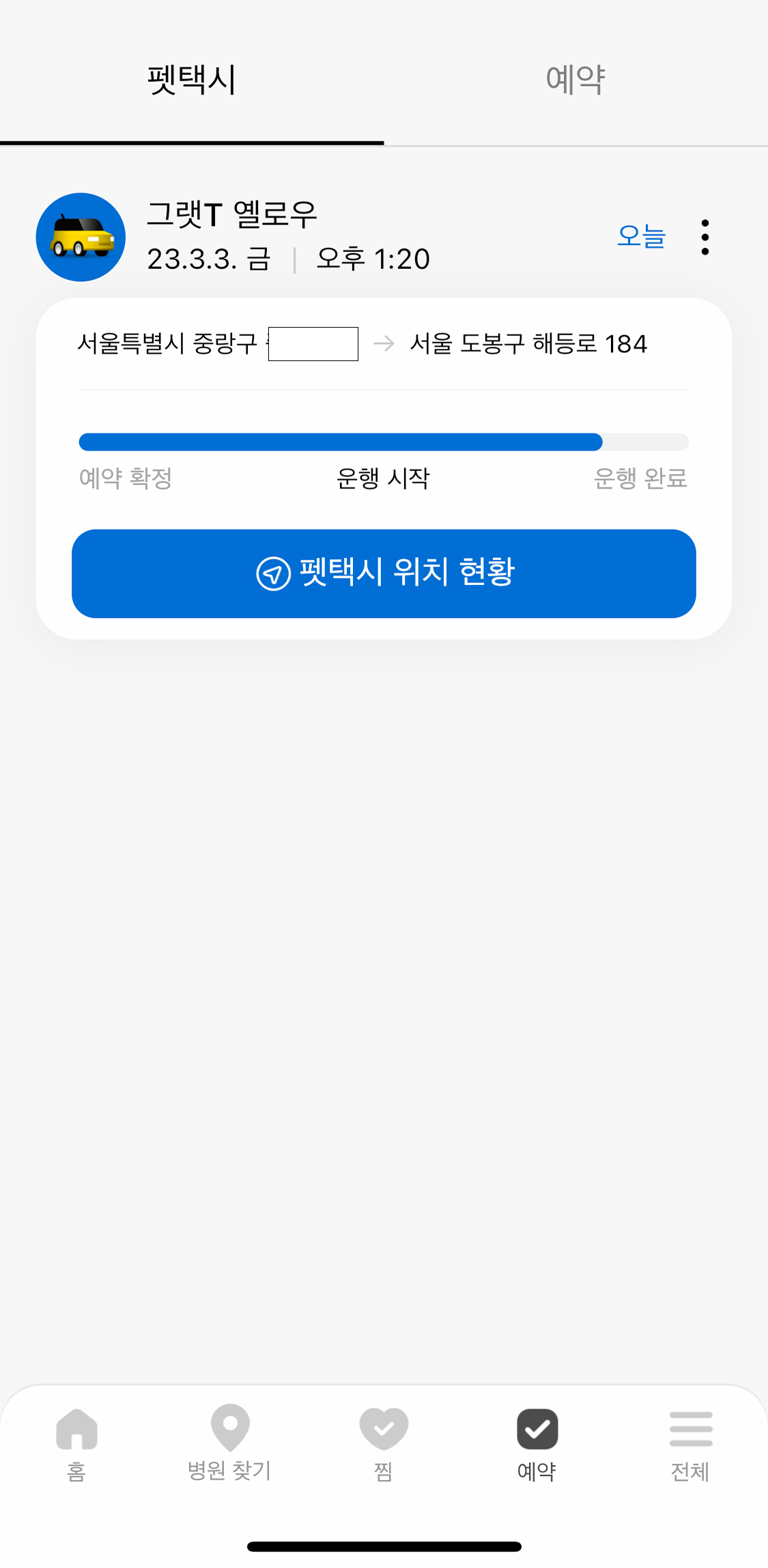 APP으로 예약하는 과정은 어렵지 않았다. 예약 과정보단 내가 과연 그 시간에 나의 고양이를 이동장에 잘 넣어서 데리고 갈 수 있을지가 문제였지. 병원 도착시간보다 약간 여유를 더 두고 예약했다. 그리고 당일날, 기사님은 무려 15분 일찍 도착하셔서 기다리셨다.