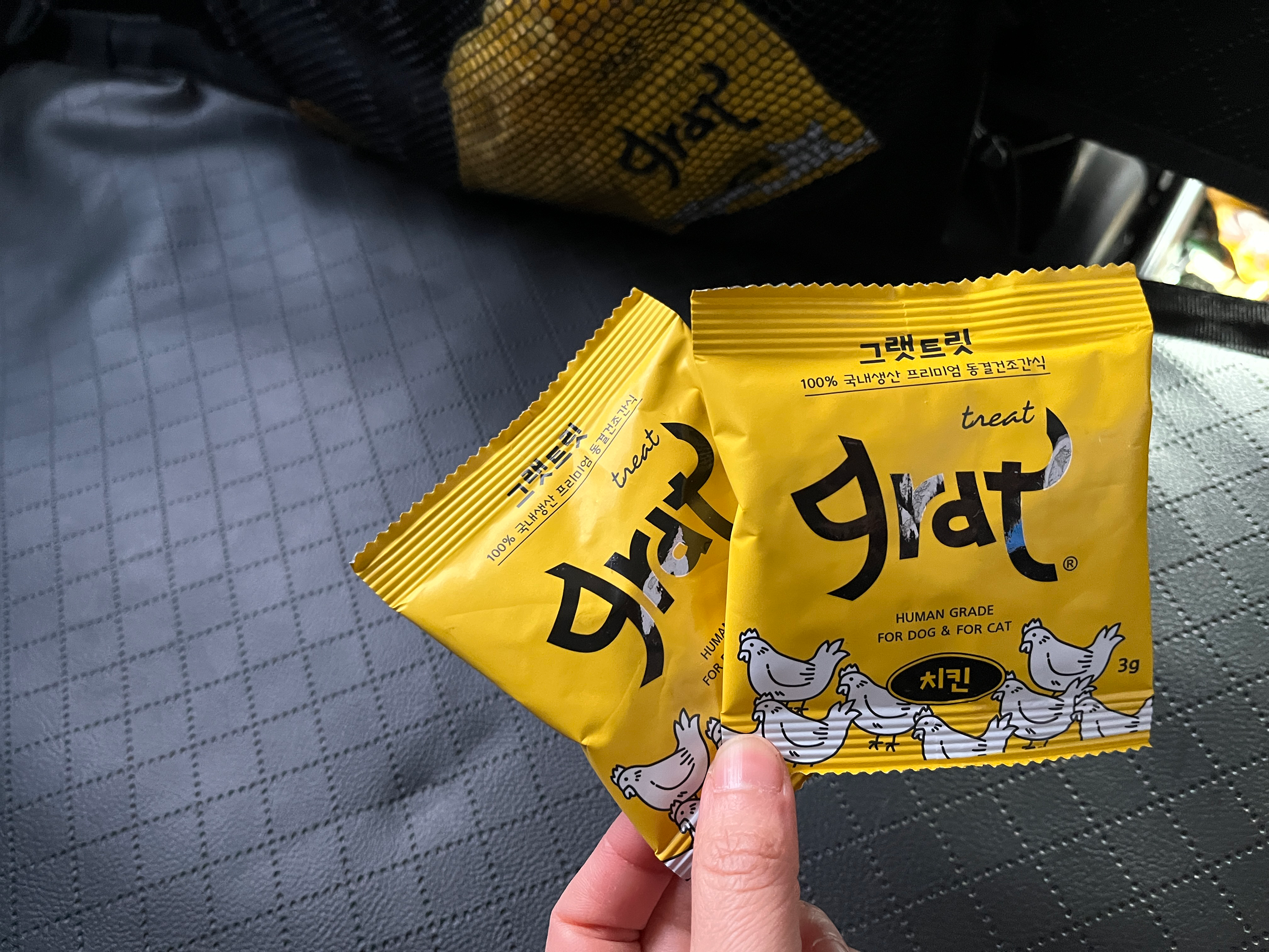 그랫은 반려동물을 위한 택시답게 간식이나, 배변봉투가 마련되어 있었다. 트릿을 챙겨뒀는데, 이건 병원에 다녀온 남이가 삐칠 게 뻔하므로 그때 주면 될 것 같았다. 그리고 가장 좋은 건 운전을 정말 안전하게 하신다. 천천히 동네 골목을 빠져나가고, 급정거도 없는 부드러운 운행이었다. 그 운전이 나쁘지 않아서였을까, 남이는 아주 가끔 울며 얌전하게 병원까지 따라갔다.
