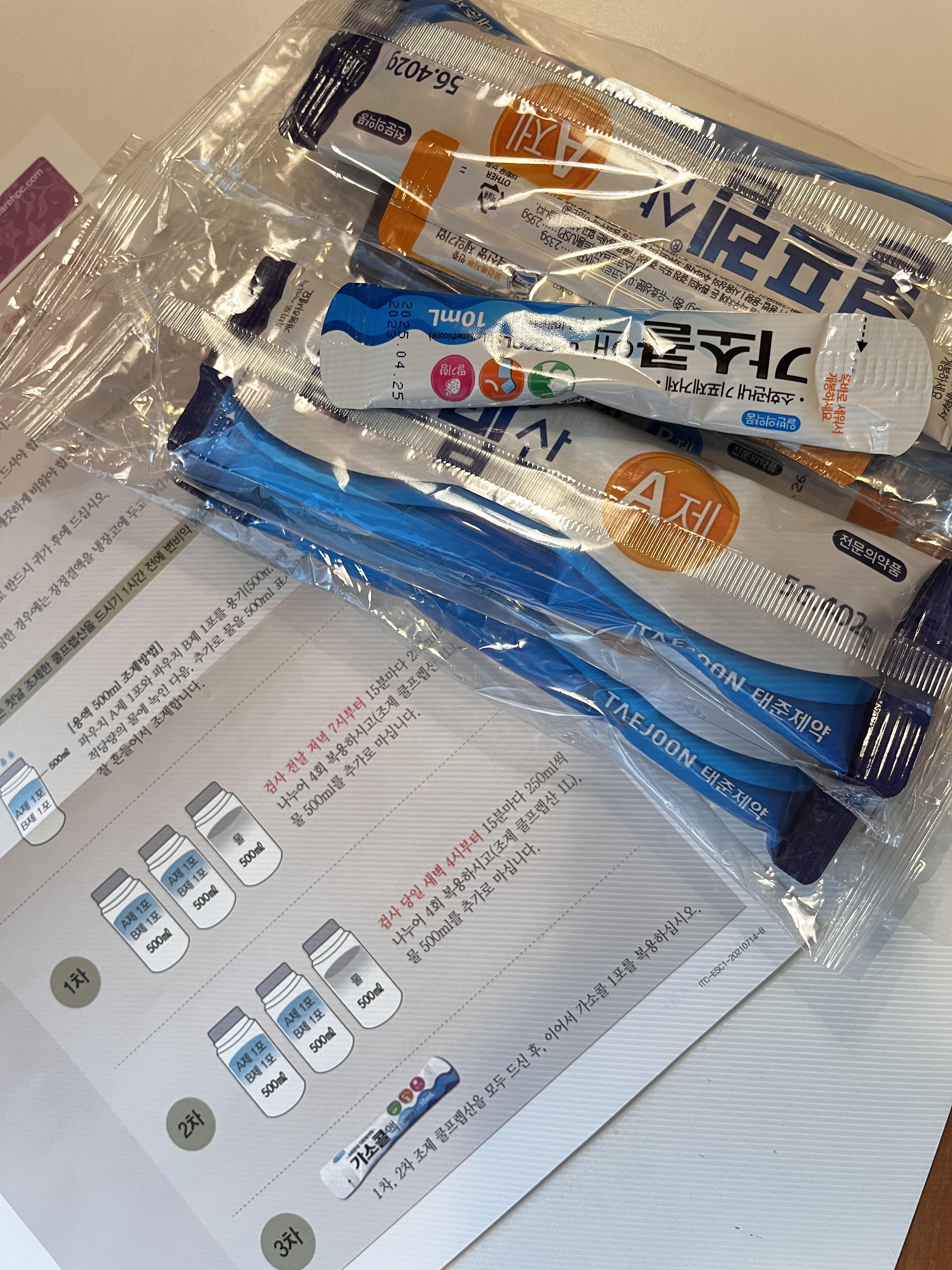 수면을 선택했다 보니 위와 대장 내시경이 가장 마지막 순서였다. 시간이 많이 걸리기도 하고. 대장내시경은 이번이 두번째로 이제 알약이 생겨서 물을 안 마셔도 될 줄 알았더니, 인터케어는 그렇지 않았다. 전날 정해진 시간부터 3L에 가까운 물을 마시고 검진을 받으러 와서까지 화장실을 들락날락.