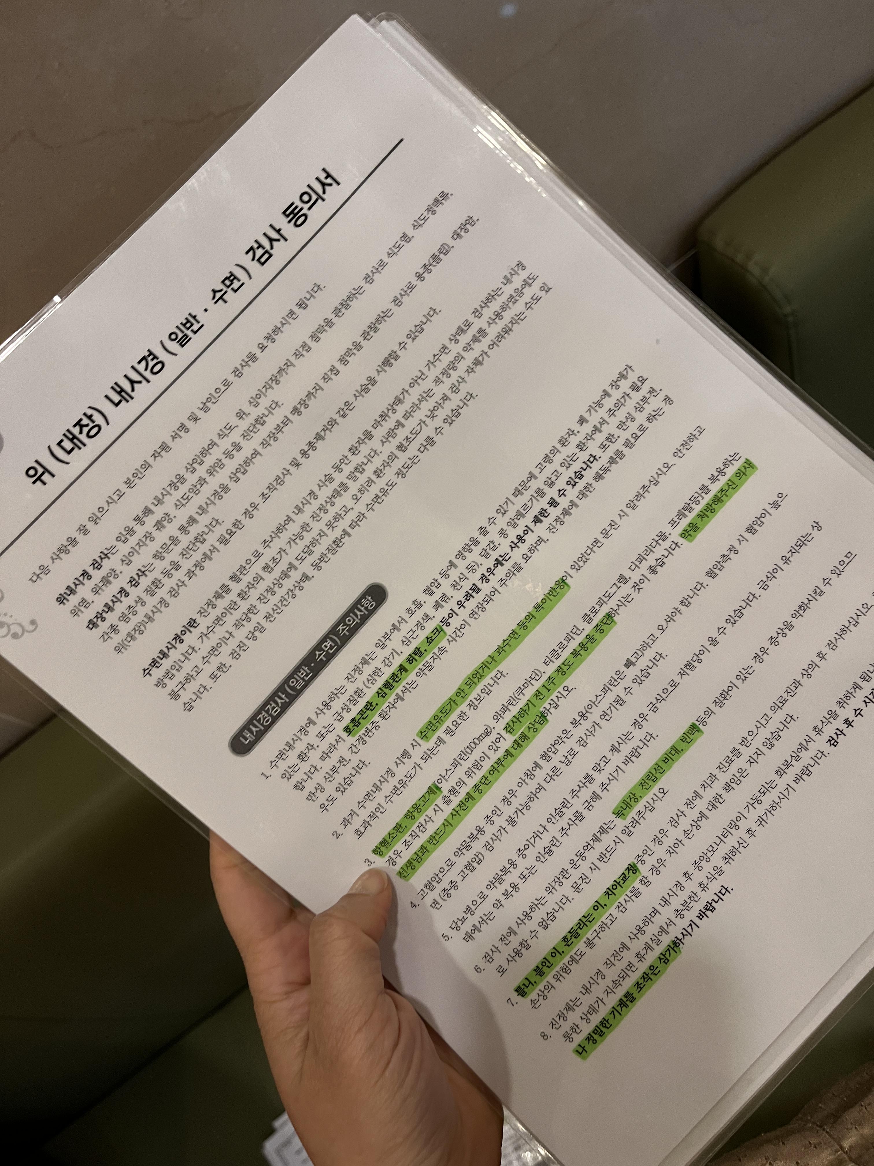 수면을 선택했다 보니 위와 대장 내시경이 가장 마지막 순서였다. 시간이 많이 걸리기도 하고. 대장내시경은 이번이 두번째로 이제 알약이 생겨서 물을 안 마셔도 될 줄 알았더니, 인터케어는 그렇지 않았다. 전날 정해진 시간부터 3L에 가까운 물을 마시고 검진을 받으러 와서까지 화장실을 들락날락.