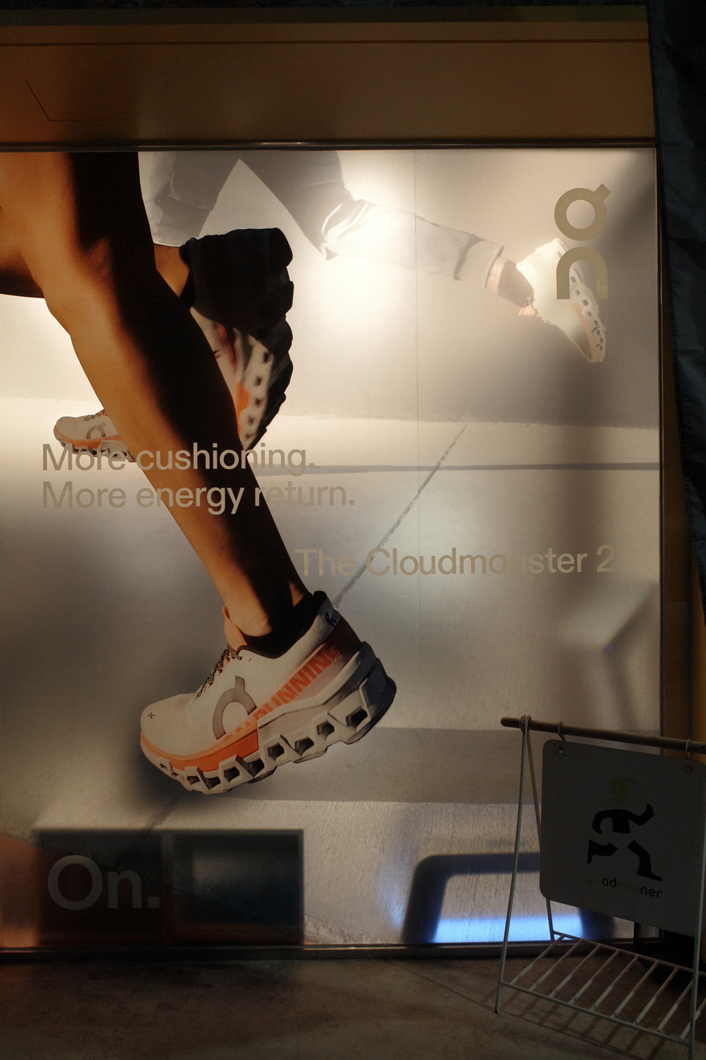 칼발, 발 아치가 낮은 편(이란 건 나중에 알았다)이라 쿠션화보단 안정화가 잘 맞아 스트라터스는 내게 잘 맞았다. 이 신을 신고 첫 하프 마라톤 도전도 무사히 완료했고, 그렇게 온러닝에 대한 애정으로 클라우드 몬스터 2 론칭 프로모션도 냉큼 신청했다.
