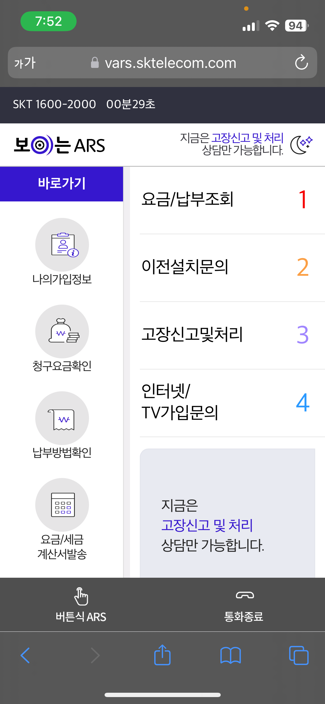 그렇게 다시 SKT 고객센터로 전화했다. 정말 다행인 건, 고장 및 장애 문의와 관련해서는 24시간 응대하고 있어서 고객센터 운영시간이 아니었음에도 연결되었다. 고객센터 측에서 다시 인터넷 신호를 보냈음에도 여전히 인터넷이 되지 않아 결국 다음날 기사님이 오기로 했다.